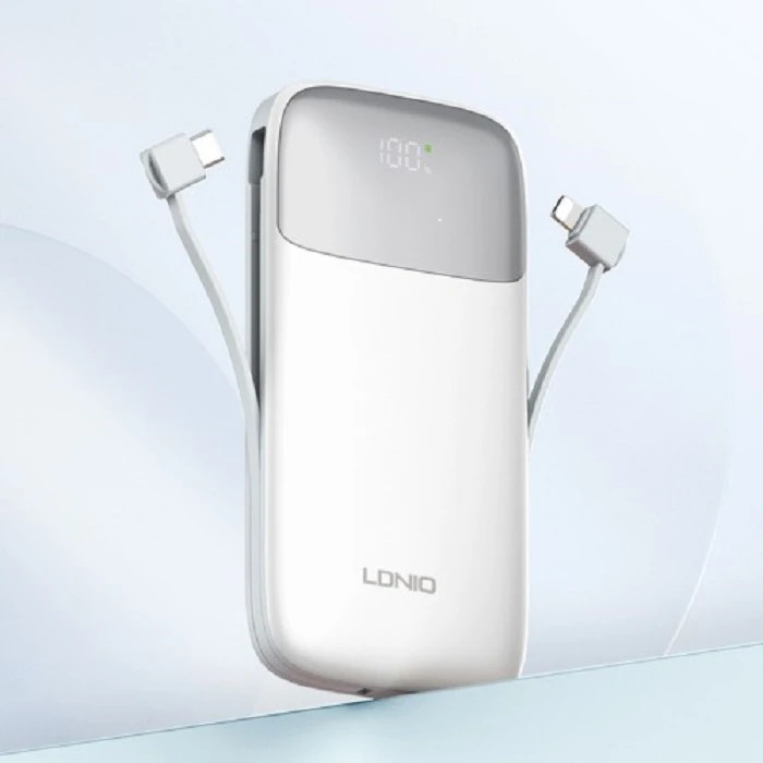 کمپانی LDNIO در دنیای لوازم جانبی کاملا شناخته شده است و شهرت این برند ، در کیفیت ساخت بسیار بالا و همچنین مجهز بودن به تکنولوژی و امکانات روز است. تمامی محوصلات این برند در فروشگاه های معتبر سراسر دنیا اهم از آمریکا و اروپا و ... به فروش می رسد و محصولات متععدی ازین برند در سایت آمازون نیز به چشم می خورد. پاوربانک الدینیو PQ19 جدیدترین پاوربانک کمپانی LDNIO و یکی از زیباترین ، خوش ساخت ترین و مجهزترین مدل ها این برند محصوب می گردد. طراحی شکل ظاهری به شدت جذاب و چشم و نواز است. متریال بی نظیر ، کیفیت ساخت بالا ، خوش دست بودن و ظاهر حرفه ای این محصول ، از دیگر مزایای این کالا در نگاه اول است. به بدنه ، 2 نوع کابل متصل است ، تا کاربر را از به همراه داشتن کابل های متعدد بی نیاز سازد. در بالای پاوربانک 1 درگاه ورودی Type-C قرار گرفته که می تواند پاوربان را بصورت FAST شارژ نماید. در کنار آن 1 درگاه خروجی USB نیز تعبیه شده است. بر روی پنل جلویی ، نمایشگر LCD برای نماش درصدی شارژ باقی مانده در پاوربانک قرار دارد که به زیبایی و جذابین این محصول نیز ، می افزاید. کابل Lightning ( اپلی ) متصل به بدنه ، دارای توان 20 وات است تا برای شارژ نمودن جدیدترین موبایل های شرکت APPLE نیز کارآمد باشد. کابل Type-C ( تایپ سی ) متصل به بدنه ، دارای خروجی 22.5 وات است تا این کابل نیز ، برای طیف گسترده از انواع دستگاه ها مانند ؛ موبایل ، تبلت ، هدفون ، ساعت هوشمند و ... ، از تمامی برند ها کارآمد باشد.