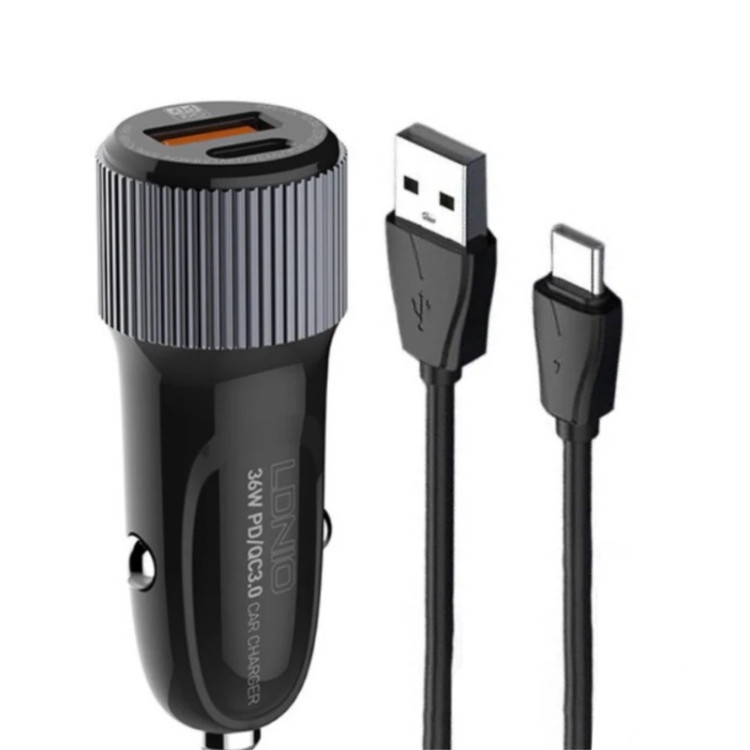 شارژر فندکی 36 وات الدینیو مدل C510 به همراه کابل تبدیل USB-C