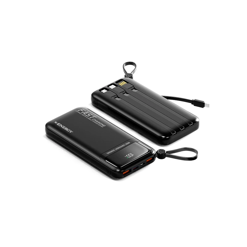 پاوربانک این روزها از ضروری ترین وسایل همراه ما به حساب می آیند. کمپانی ایکس انرژی در سال های اخیر با تولید پاوربانک های با کیفیت و مدرن وارد بازار های جهانی شده است. پاوربانک ایکس انرژی X-813 با داشتن 3 پورت خروجی، حداکثر توان خروجی 22.5 وات و ظرفیت 10000 میلی آمپر بر ساعت می تواند همراه خوبی برای شما باشد. داشتن نشانگر برای نمایش باتری کامل کننده ویژگی های این پاوربانک است. پاوربانک ایکس انرژی X-813 علاوه بر تلفن همراه، ساعت هوشمند، تبلت و هندزفری بلوتوثی شما را نیز می تواند شارژ کند. جنس این پاوربانک از پلاستیک ساخته شده است. ابعاد آن 140x70x28 میلیمتر است و وزنی برابر با 240 گرم دارد که جز پاوربانک های مناسب برای استفاده روزمره است. برای اطلاع از میزان شارژ پاوربانک نشانگر LED روی پاوربانک در نظر گرفته شده است که میزان شارژ باقی مانده را نمایش می دهد تا با پاوربانک خالی مواجه نشوید. پاوربانک ایکس انرژی X-813 دارای 4 درگاه است. یک درگاه PD و یک درگاه میکرو (که پورت ورودی برای شارژ پاوربانک است). دو درگاه USB برای شارژدهی .ساخته شده از چهار کابل سرخود بر روی پاوربانک می باشد سه کابل (لایتنینگ تایپ سی ومیکرو) برای شارژدهی و یک کابل USB برای شارژ کردن خود پاوربانک استفاده شده است میزان شدت جریان/ولتاژ ورودی پورت Type C و میکرو برابر با 5V/2A است. میزان شدت جریان/ولتاژ خروجی پورت USB/TYPEC برابر 5V/3A است. در صورتی که پورت های USB به صورت همزمان استفاده شوند حداکثر توان خروجی برابر بین دو پورت تقسیم خواهد شد. این پاوربانک دارای تراشه ایمنی است تا از دستگاه های شما در برابر شارژ بیش از حد، داغ شدن، ولتاژ بالا و اتصال کوتاه محافظت کند. این پاور بانک دارای سری فامیلی در ظرفیت های 10 هزار 20 هزار 30 هزار و 50 هزار می باشدپاوربانک ایکس انرژی X-813 با Android و iOS سازگار است و میتوانید با خیال راحت این محصول را تهیه نمایید