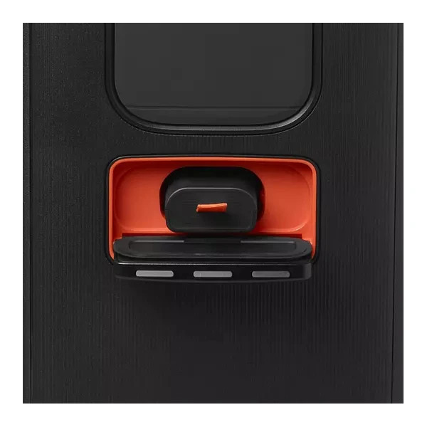 اسپیکر JBL PartyBox Club 120 از نظر طراحی ظاهر چشمگیری دارد که به راحتی توجه هر کسی را به خود جلب میکند. ابعاد آن معادل ۲۸۸.۴x۵۷۰x۲۹۷ میلیمتر است و وزن آن ۱۱۰۵۰ گرم است که به نسبت دیگر اسپیکرهای قابل حمل در همین دسته، سنگین و حجیم به نظر میرسد. این وزن زیاد به دلیل وجود سیستمهای صوتی قدرتمند و باتری لیتیوم پلیمری بزرگ در داخل اسپیکر است. در واقع، طراحی این محصول به گونهای است که بتواند صداهای بلند و با کیفیت را در فضاهای بزرگ تولید کند و بدنه آن به گونهای ساخته شده که بتواند در برابر ضربات و شرایط محیطی مختلف مقاومت کند. اسپیکر JBL PartyBox Club 120 از بلوتوث ۵.۴ پشتیبانی میکند که یکی از بهترین نسخههای بلوتوث موجود است و امکان اتصال سریع و پایدار به دستگاههای مختلف نظیر گوشیهای هوشمند، تبلتها و لپتاپها را فراهم میآورد. علاوه بر این، این اسپیکر دارای ورودی USB و AUX نیز هست که به کاربران این امکان را میدهد تا از طریق کابلهای مختلف به اسپیکر متصل شوند. یکی از ویژگیهای جالب اسپیکر PartyBox Club 120، ورودی گیتار آن است. این ورودی به شما این امکان را میدهد که به راحتی گیتار یا سایر سازهای موسیقی را به اسپیکر وصل کنید و صدای آن را از طریق اسپیکر بشنوید. این ویژگی برای کسانی که علاقهمند به اجرای زنده موسیقی هستند، بسیار مفید است